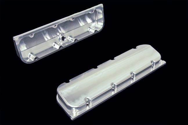 These precision machined billet valve covers are machined from billet 6061-T6 aircraft alloy. They begin life as one large hunk of aluminum and are machined down to their final shape. Most other solid billet valve covers tend to be quite heavy. The reason being is a thicker wall allows for faster material removal because of less tool chatter the down side of this is a heavy part. We go the extra mile taking light finishing cuts which result in impeccable surface finish and a lightweight part. Our valve covers also utilize a special steel bushing that protects the surface around the valve cover bolt holes from wear and over tightening. These bushings also eliminate the need for washers, which can potentially fall into the engine.