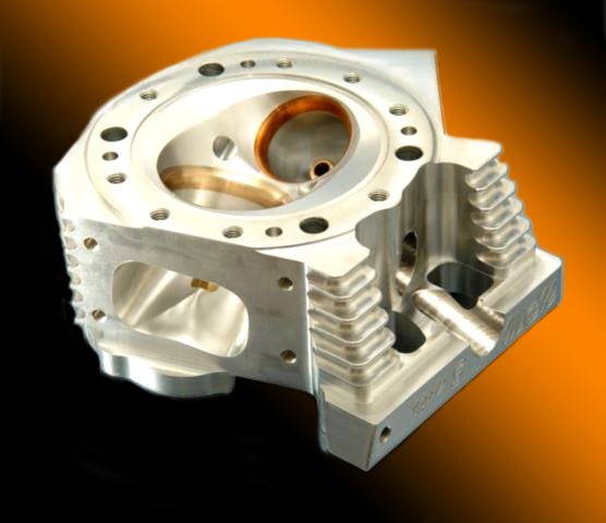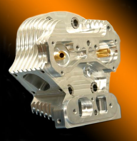 The current design is a highly engineered product resulting from years of testing, racing, and winning. Our Top Fuel Harley cylinder heads are manufactured completely in house. They start from a proprietary raw billet extrusion and are then meticulously machined on three of our CNC machining centers dedicated to this job. Next we install our in house bronze guides and beryllium valve seats. All our finish seat profiles are manually cut on a Serdi machine with specialty fixturing, this insures perfect concentricity, which translates to a tight seal and more horsepower. Finally some delicate hand blending extracts peak performance from the cylinder head. There is somewhat of a symbiotic relationship between the valve and seat so included with your heads is a set of custom ground valves that finish the package. The intake valve is made from titanium alloy. The exhaust valve is also is made from a high temperature nickel steel alloy commonly known as Inconel.