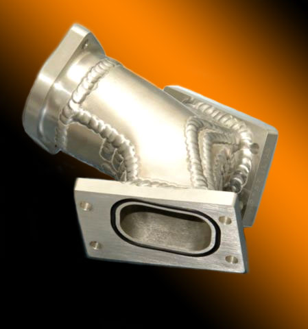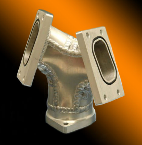 Ultra Pro Machining offers two styles of manifolds that are precisely matched to the intake ports of our heads by CNC machining the flanges to the manifold face of the head. Our dual injector manifold is fabricated from steel for strength, it is the ultimate in manifolds giving the engine equal mixture distribution to both cylinders. You will need two for a complete engine. Our single injector is made from aluminum is very light, is simpler to setup, and more economical.